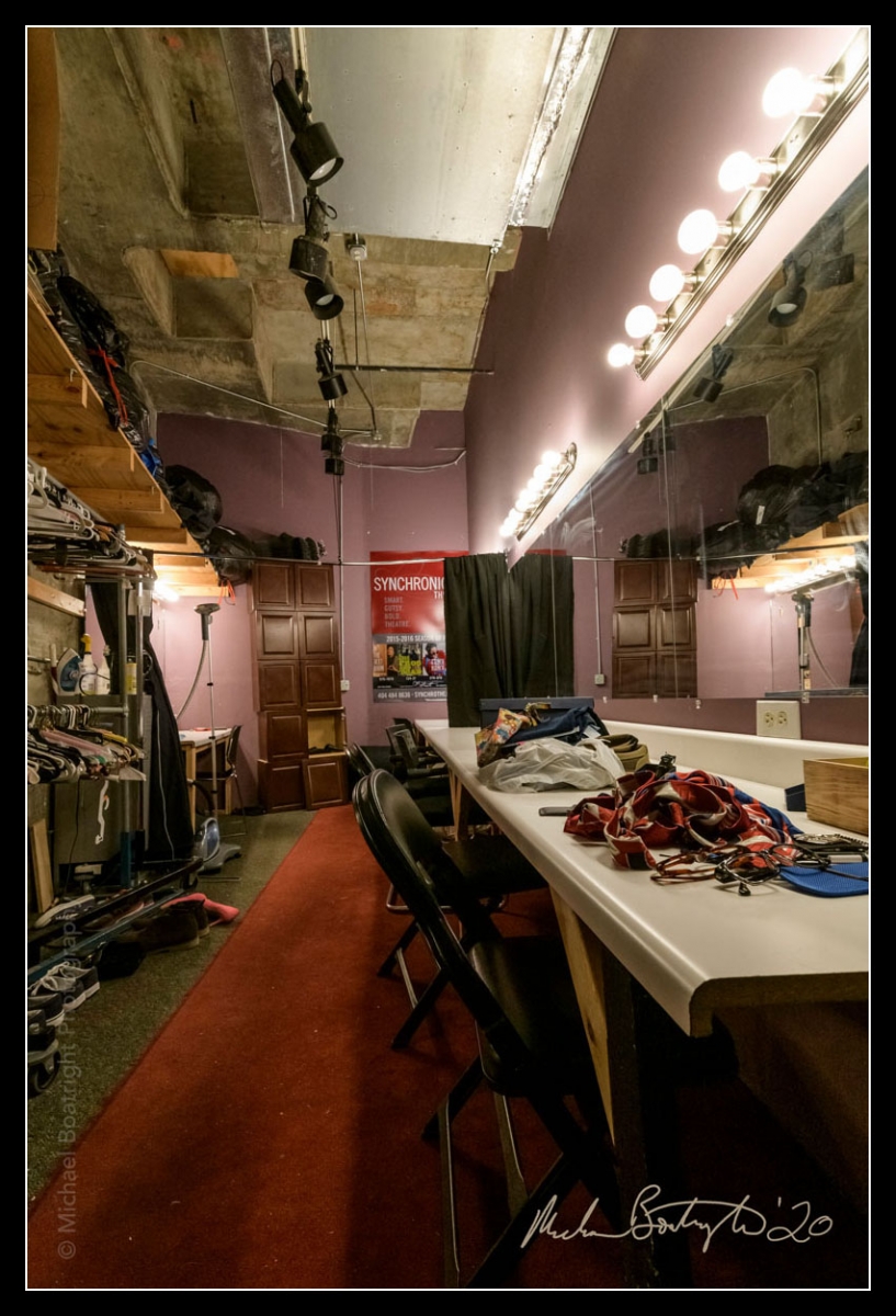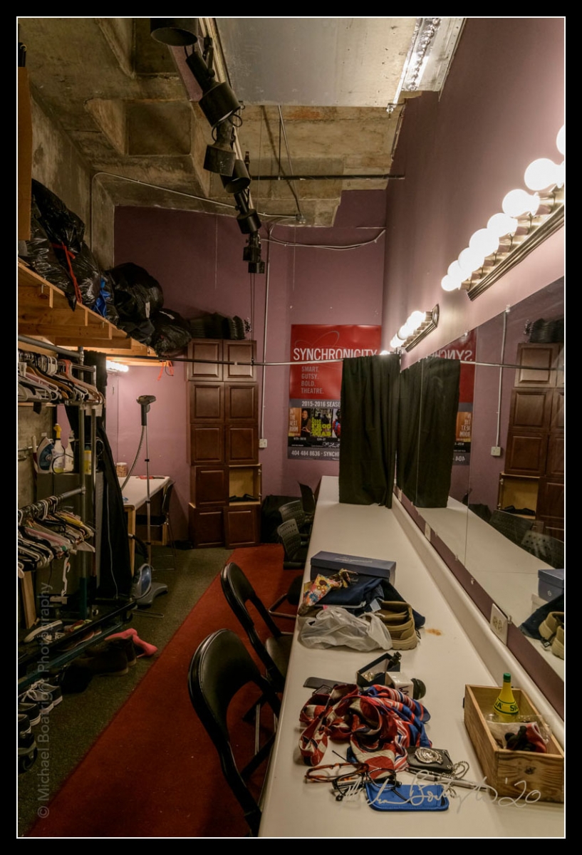 Synchronicity was in it’s second week of “Wayfinding” by Whitney Rowland when the theatre had to close due to the COVID19 crisis. Properties were carefully piled onto a medical gurney on stage and things were pretty much the same on July 18th—when they opened the doors so that I could make photographs for this #darkhousesatlanta project—as they were the second week of March.