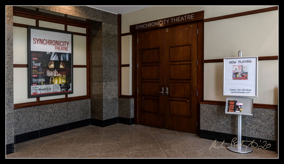 Synchronicity Theatre is in one of the strangest of locations for a theater in Atlanta: on the ground floor of an office building in Pershing Pointe on Peachtree Street, along with marketing companies and stockbrokers and across the street from WSB TV/Radio studios!